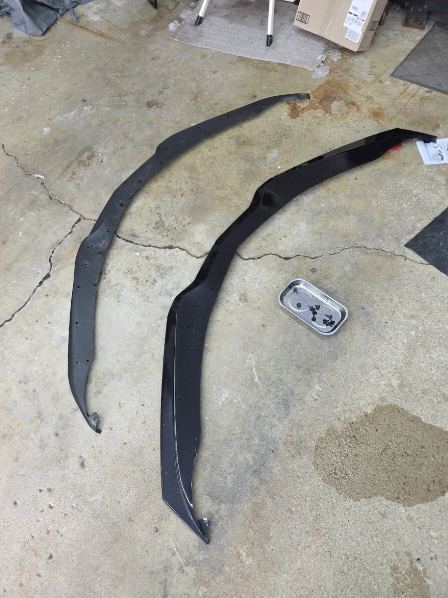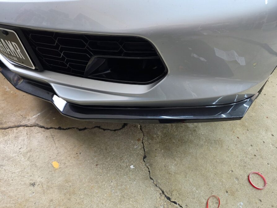 It was an easy install since I had an untaped Stage 1 stock textured plastic version installed. I used the supplied 3M tape and screws to put the new one in place, starting at the outside positions so I could ensure both sides lined up. I worked my way to the center and found that I could use all screw holes. I was a little disappointed that the winglets had to be taped on, but I understand that not everyone would want them, and it didn’t make sense to put holes in the splitter if you are selling it both ways.
